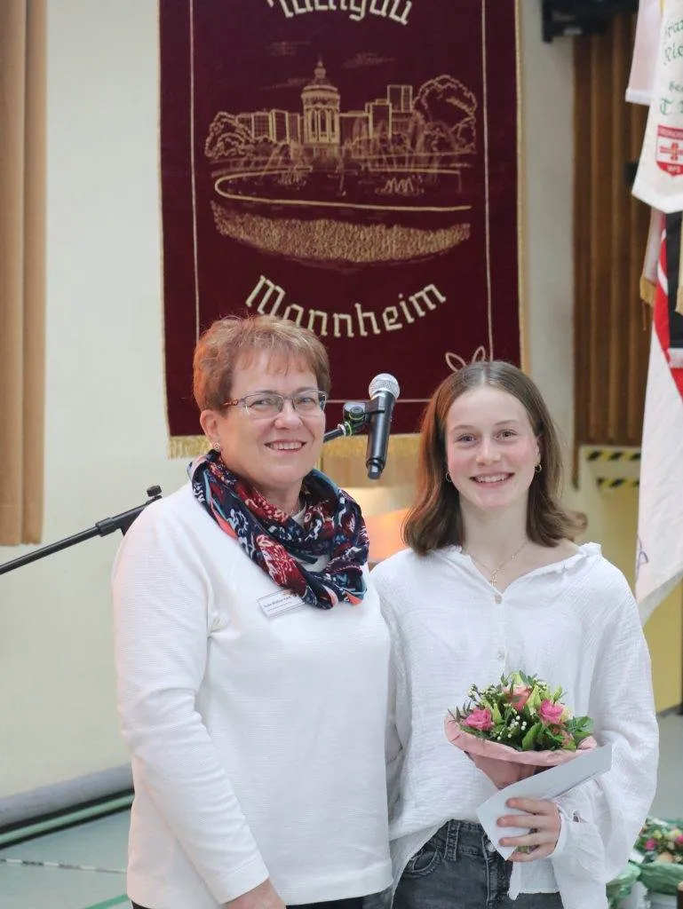 Geehrt für ihre sportliche Leistung wurde Turnerin Line Marie Mayer (TSG Weinheim), die bei den deutschen Jugendmeisterschaften der AK 14 Gold am Balken und Silber am Boden gewann.